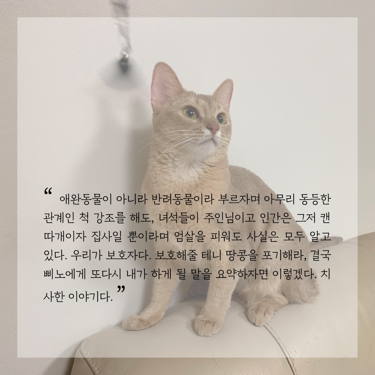녀석들이 바라보는 세상이란 걸 따져보자면 사람들의 그것과는 판이하게 다른 거다. 고양이
